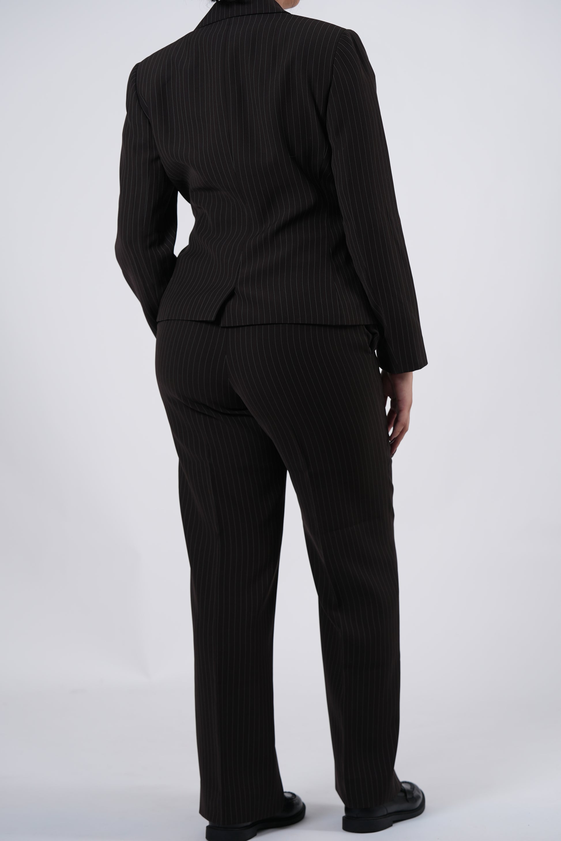 Eleva tu estándar de estilo ejecutivo con este traje de dos piezas de Tahari (Talla 4). La marca Tahari es mundialmente reconocida por su sastrería de lujo y cortes precisos, y este conjunto en color negro no es la excepción. Confeccionado en una sofisticada mezcla de lana sintética, ofrece un acabado elegante, suave al tacto y altamente resistente a las arrugas, ideal para lucir impecable durante todo el día. El pantalón de cintura alta y pernera recta de corte largo alarga visualmente la silueta, brindando una imagen de autoridad y sofisticación moderna.